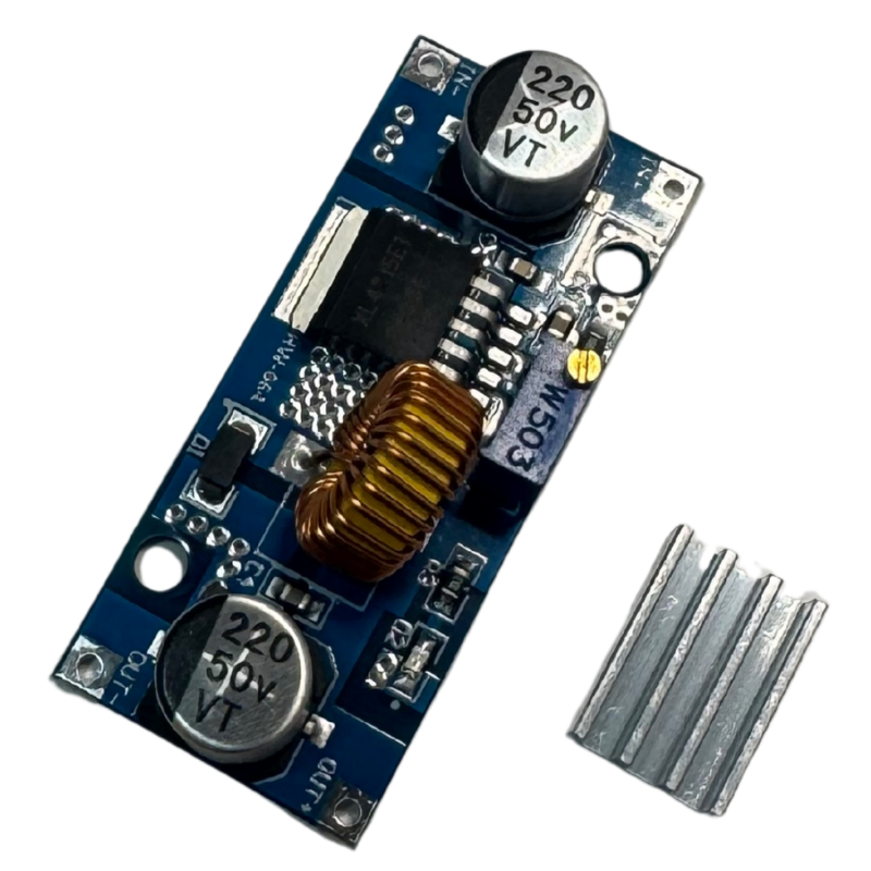Este modelo soporta hasta 5A, lo que lo convierte en una opción robusta comparada con módulos estándar como el LM2596. Además, incluye un potenciómetro ajustable para definir el voltaje de salida con precisión.